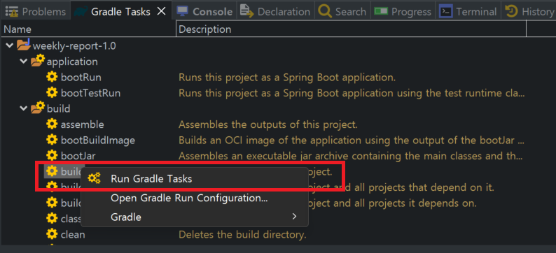3. Gradle Tasks > build 실행