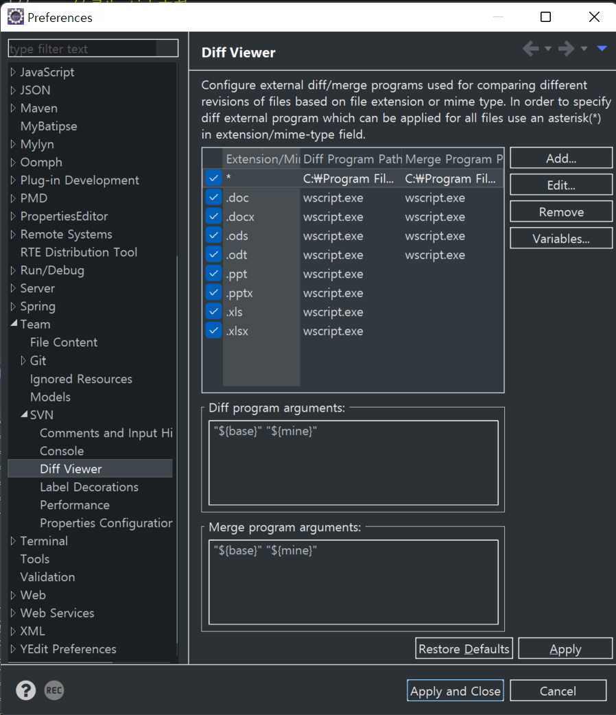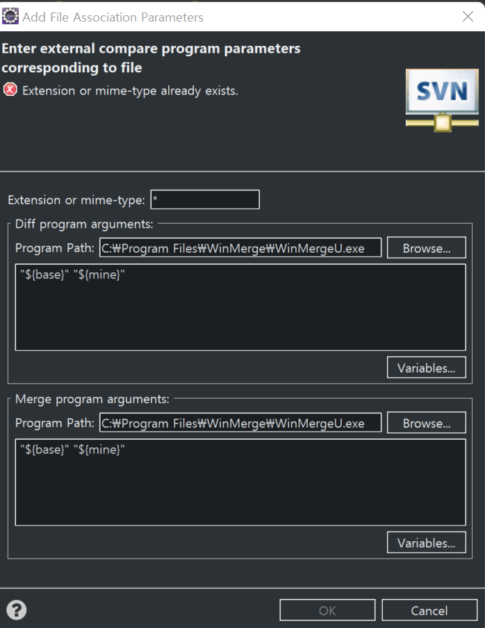 Program Path : winmerge 가 설치된 경로의 실행 파일 선택