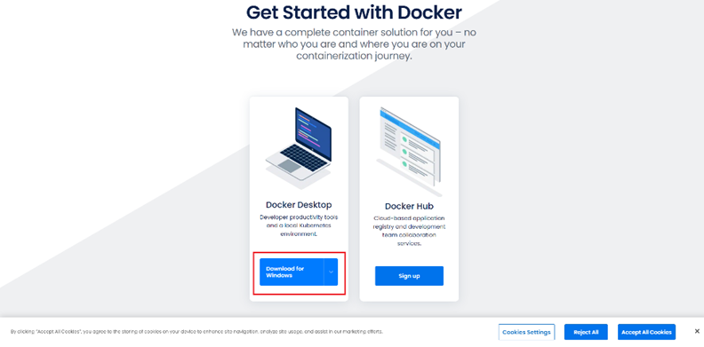 https://www.docker.com/get-started/ 로 이동 후 도커를 다운로드 받는다.