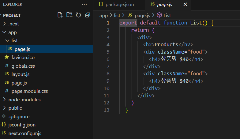이렇게 해주면 된다.app > list (경로명) 폴더를 만들고, 만든 폴더 안에 page.js를 생성해주고 페이지를 작성해주면,