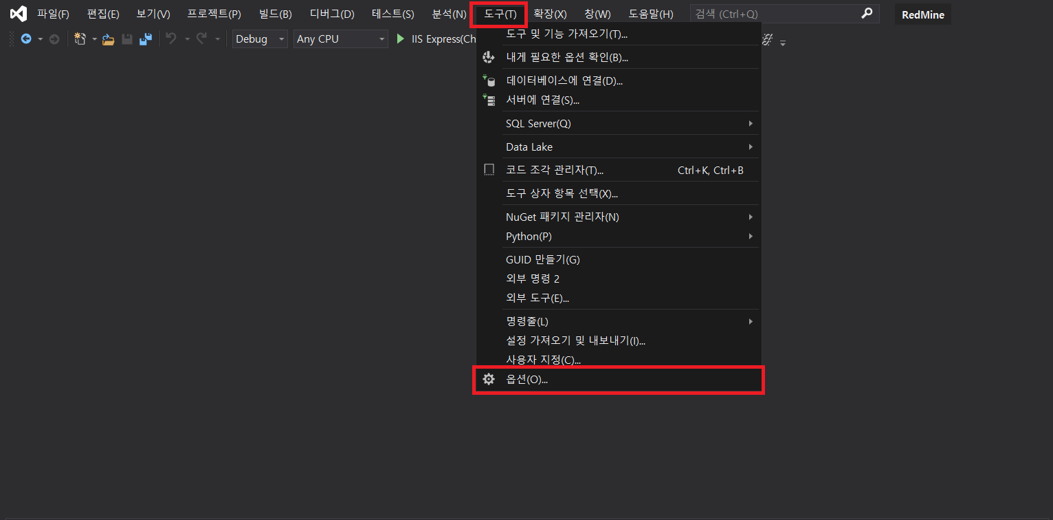 도구 > 옵션 > 프로젝트 및 솔루션 > 웹 프로젝트에서