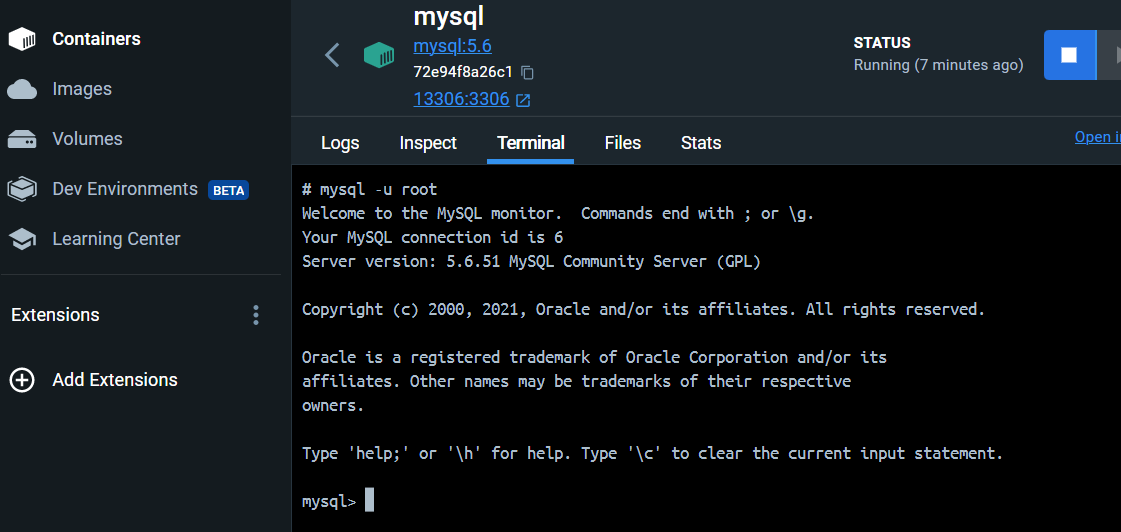 2. docker run -d -p 13306:3306 --restart always -e MYSQL_ALLOW_EMPTY_PASSWORD=true --name mysql mysql:5.7